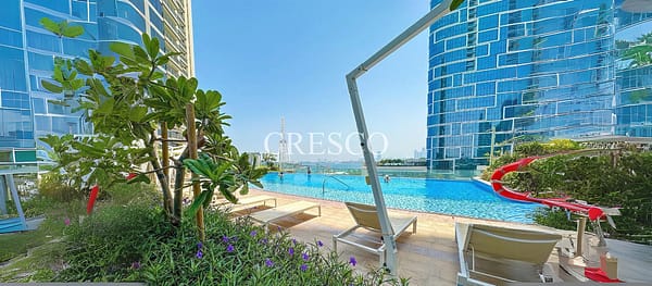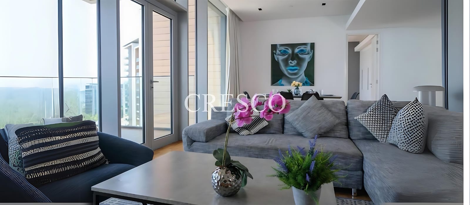 2 bedrooms, 2 bathrooms, master bedroom, fully furnished, built-in appliances in the kitchen, panoramic windows, view of the marina, balcony, developed infrastructure