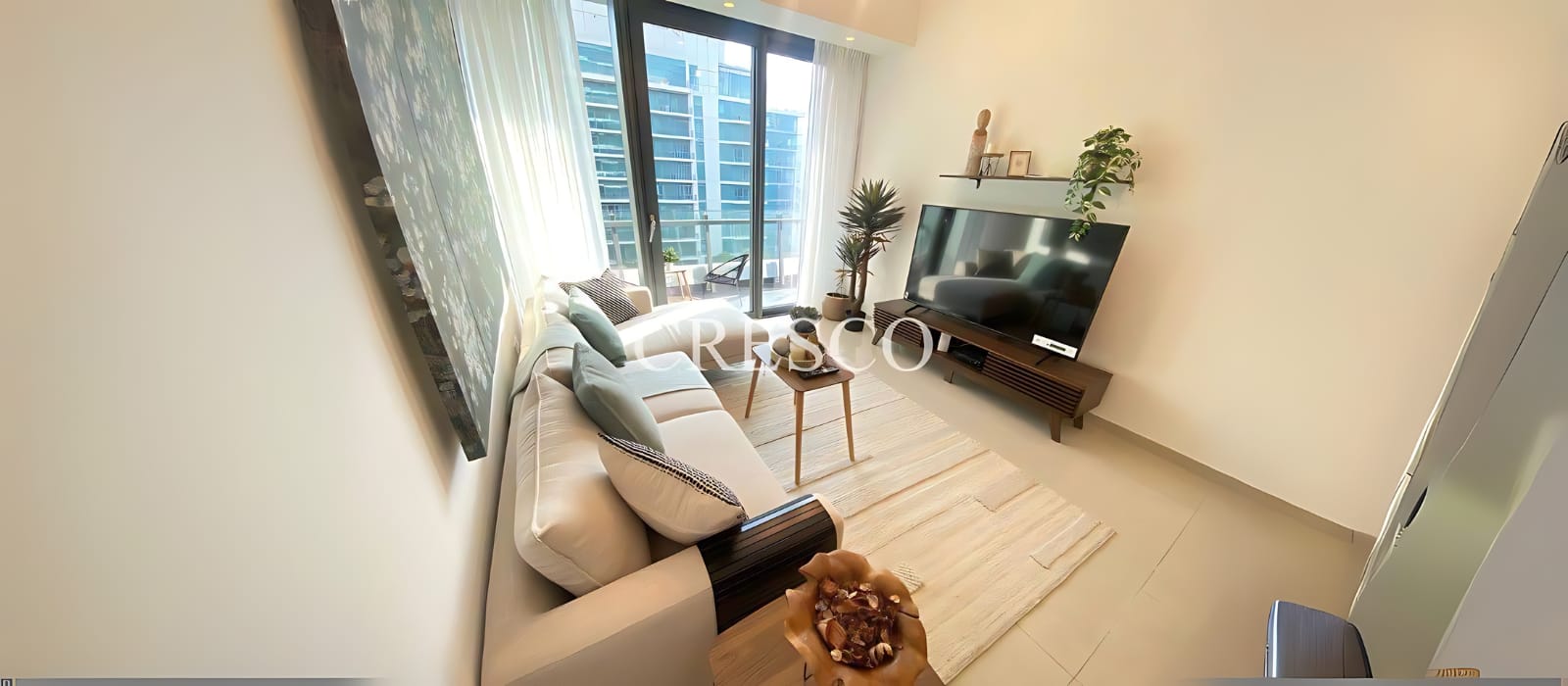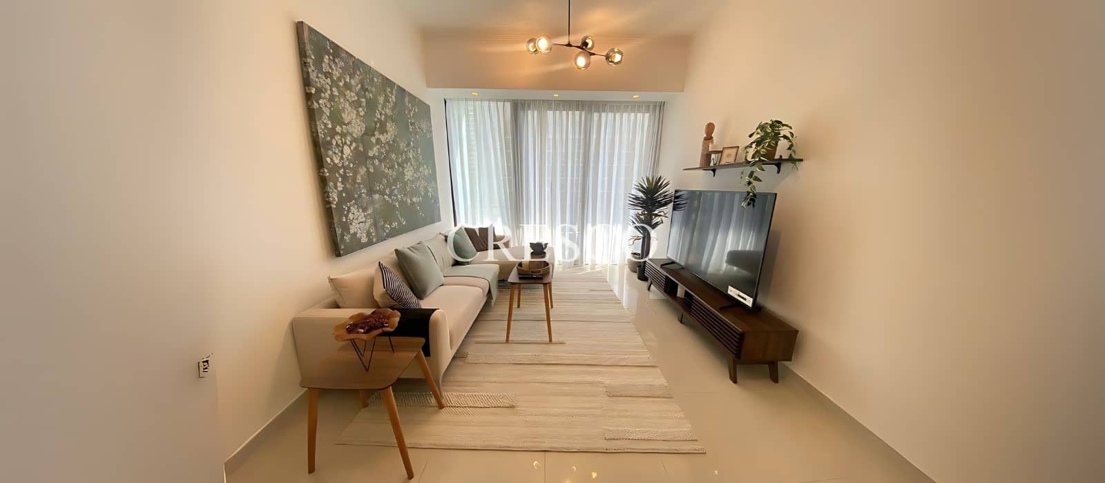 2 bedrooms, 1 bathroom, shared gym, common pool, developed infrastructure, balcony, central AC/heating